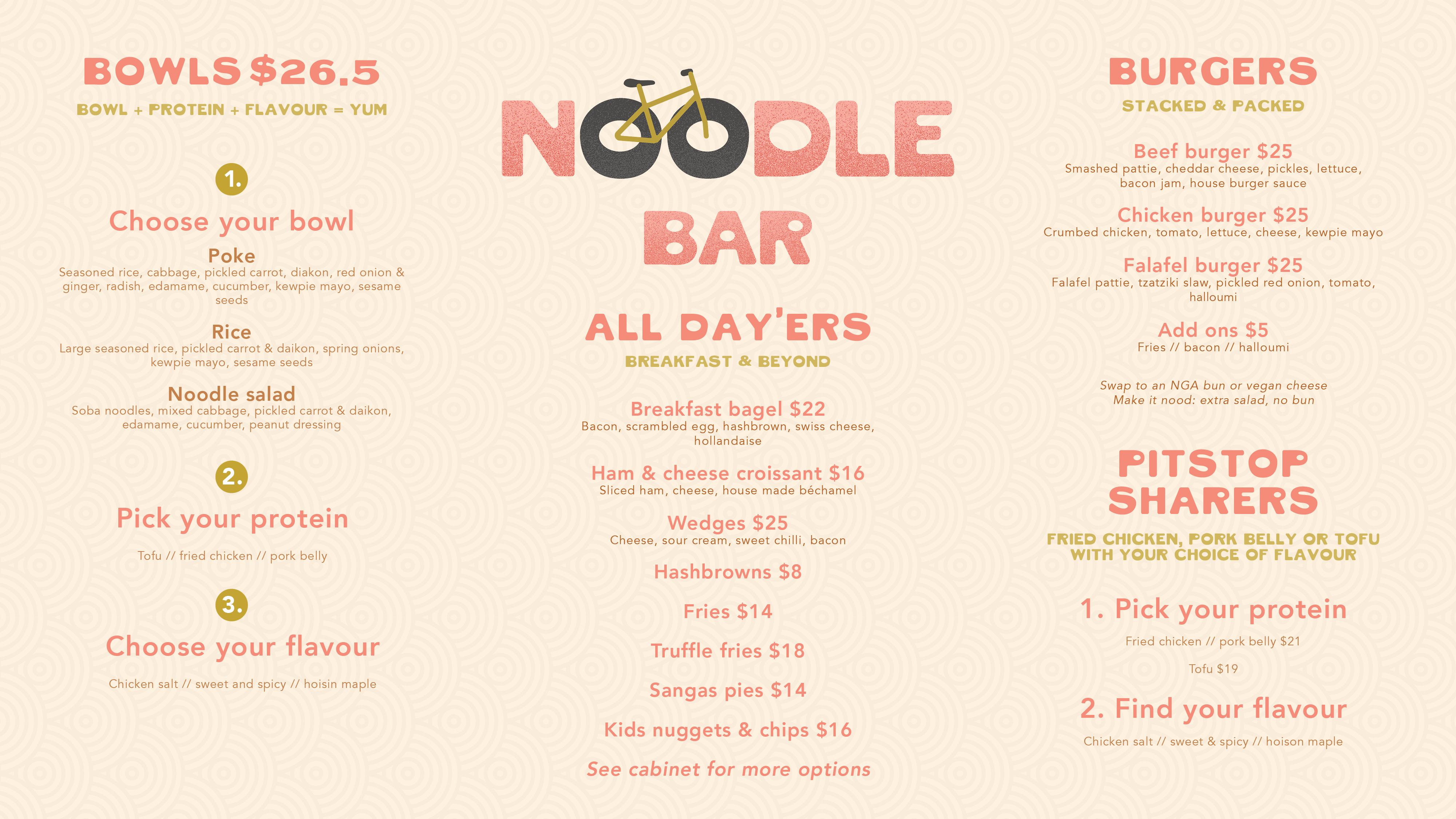 Noodle Bar serves up easy, flavour-packed favourites from morning through to late. Think build-your-own bowls, stacked burgers, all-day breakfast, and crispy sides, all in a relaxed spot with great views. Perfect for a quick refuel or a laid-back bite.